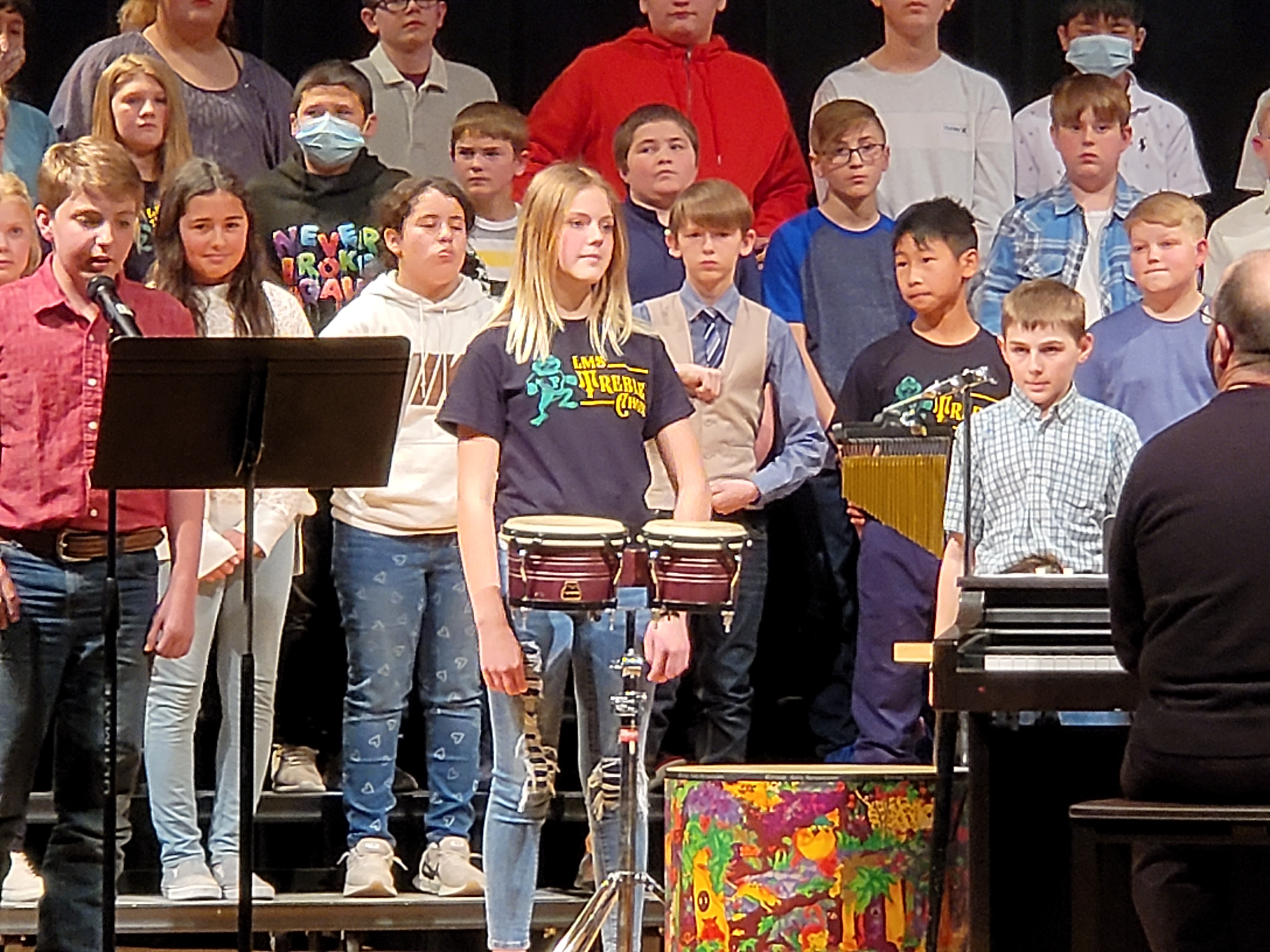Liam competed with his 7th grade scholars bowl team (they were super smarty pants champions) and Jenny worked as a score keeper. We stayed at the Barnses one weekend so we could go to all our stake conference meetings (and listen to Elder Gong speak), and watch the Green kids in a Wichita Children's Theater production, and do a little summer clothes shopping (during which we happened to find some cute formal dresses for Hanna's and Jenny's future use). Took Mae and the younger kids to Nifty Nut house while Dad took Hanna to pick out a new (used) teenager car - a shiny blue Ford Fusion. Saw Jenny sing and play the bongos in her 6th grade music concert and let her have a rowdy dance party sleepover.